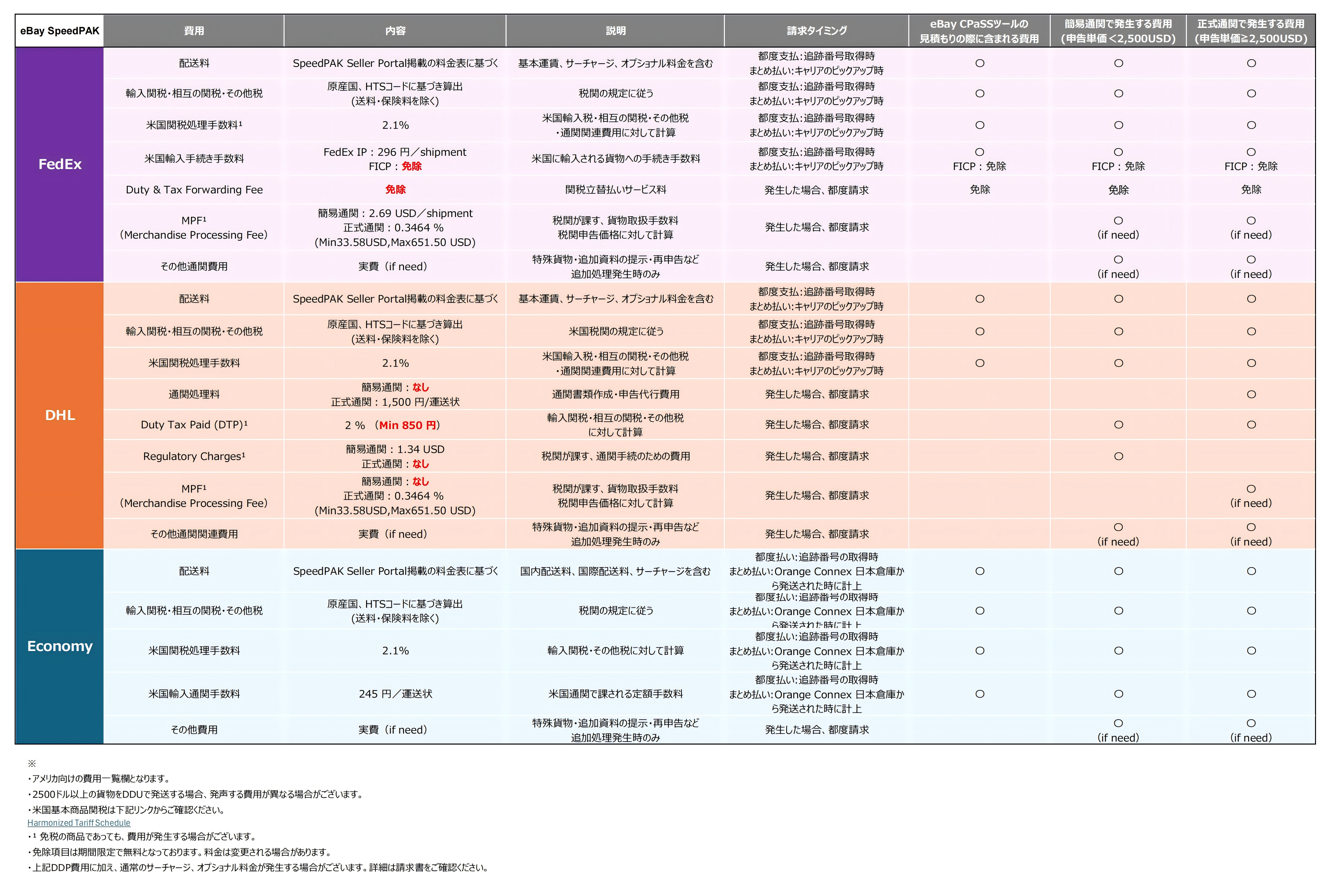 ・上記DDP費用に加え、通常のサーチャージ、オプショナル料金が発生する場合がございます。詳細は請求書をご確認ください。